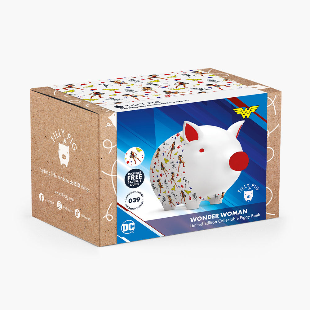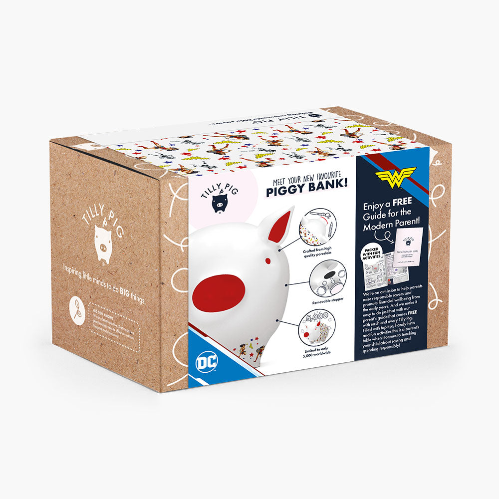 Each adorable Tilly Pig is handcrafted by our artisan piggy bank makers with a full colour design and plenty of room for all of those coins to be saved!